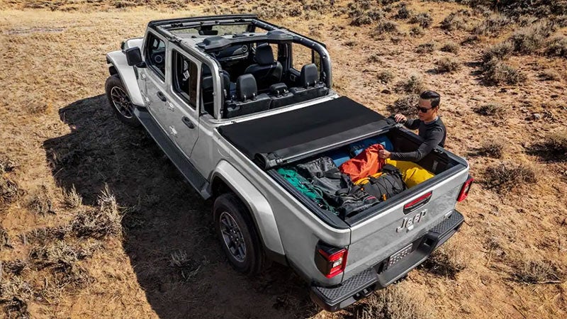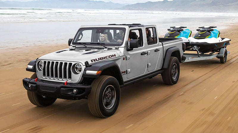 The Jeep Gladiator meshes Jeep versatility with brawny truck capability. The sole Jeep truck model is available to drivers in eight trim levels, two engine variants, and a wide variety of tech and comfort configurations. If you enjoy off-road capability and unique Jeep styling, then the new Jeep Gladiator is a must consider. The full Jeep trim lineup consists of the Sport, Sport S, Willys, Overland, 80th Anniversary, Mojave, Rubicon, and High Altitude.