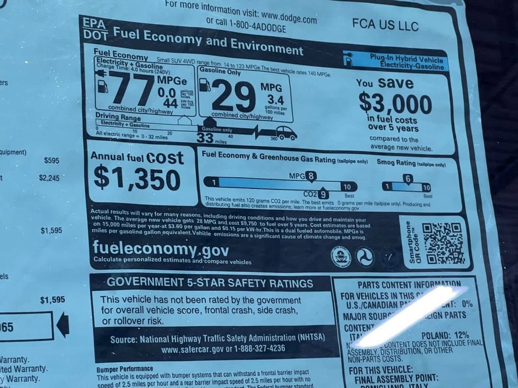 - EPA MPG Equivalent - Combined: 77.0